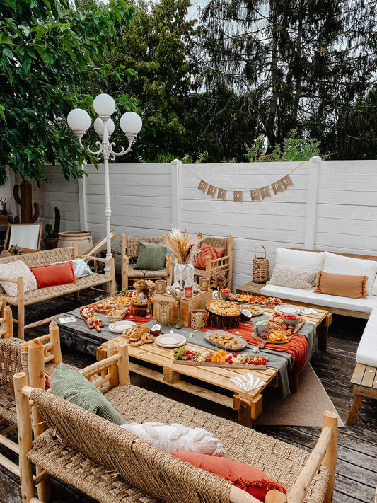 Découvrez toute notre gamme de décoration disponible à la location et ajoutez une touche de charme naturel et bohème à vos événements.