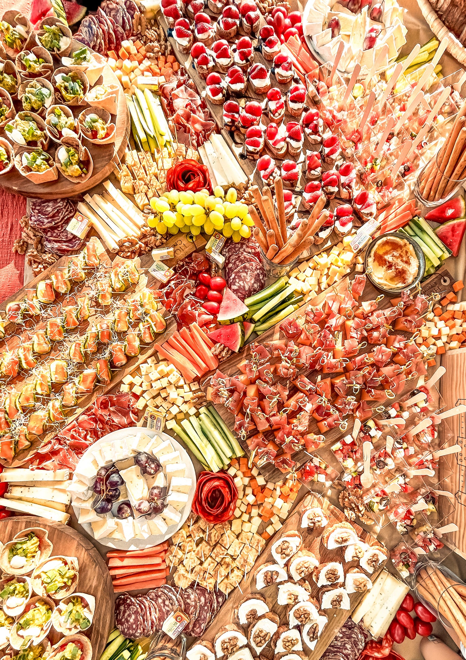 Notre buffet à l'esprit Grazing table est un véritable tableau visuel, unique et coloré, composé de délices faits maison, frais et savoureux. Il séduit par son originalité et son esthétisme et marquera l'esprit de vos invités.